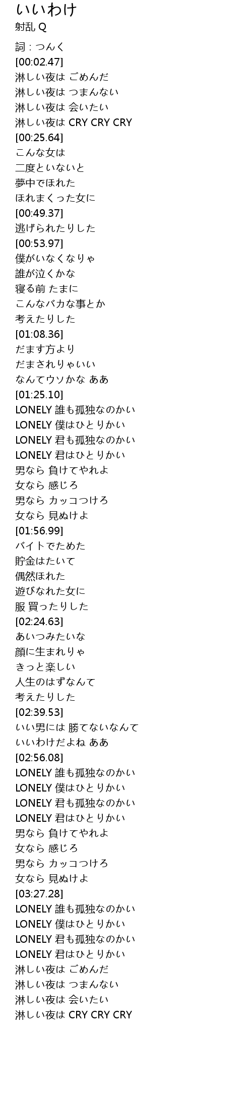 淋しい夜は CRY CRY CRY |