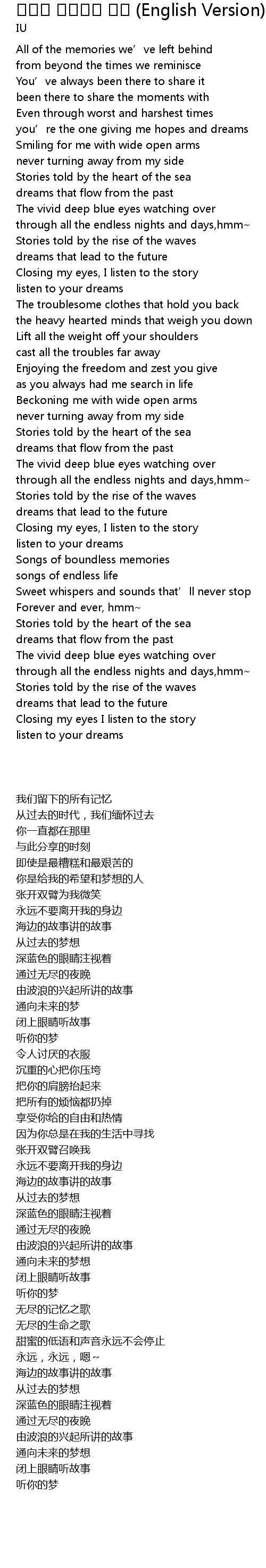 | Song | 바다가 기억하는 얘기 (English Version) |