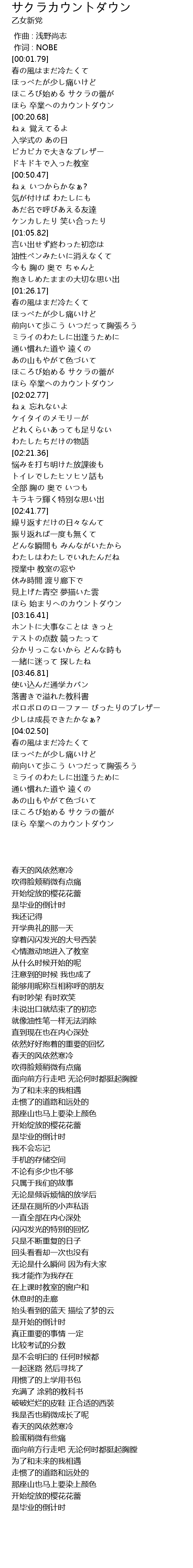 | [00:16.12] | ほら 卒業へのカウントダウン |
