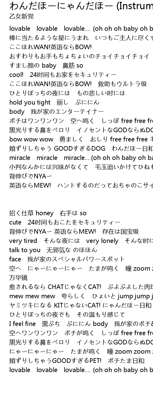 | Song | わんだほーにゃんだほー (Instrumental) |