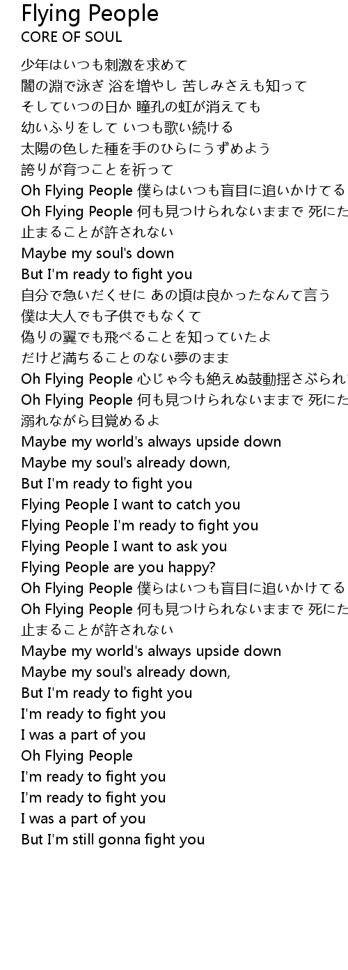 | Oh Flying People 心じゃ今も絶えぬ鼓動揺さぶられてる | |