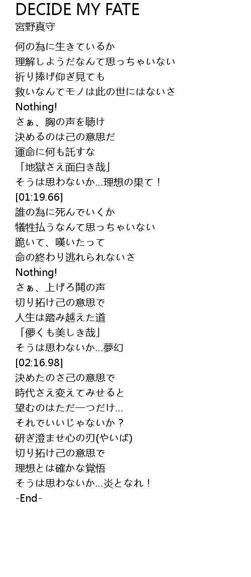 | [00:57.70] | 決めるのは己の意思だ |