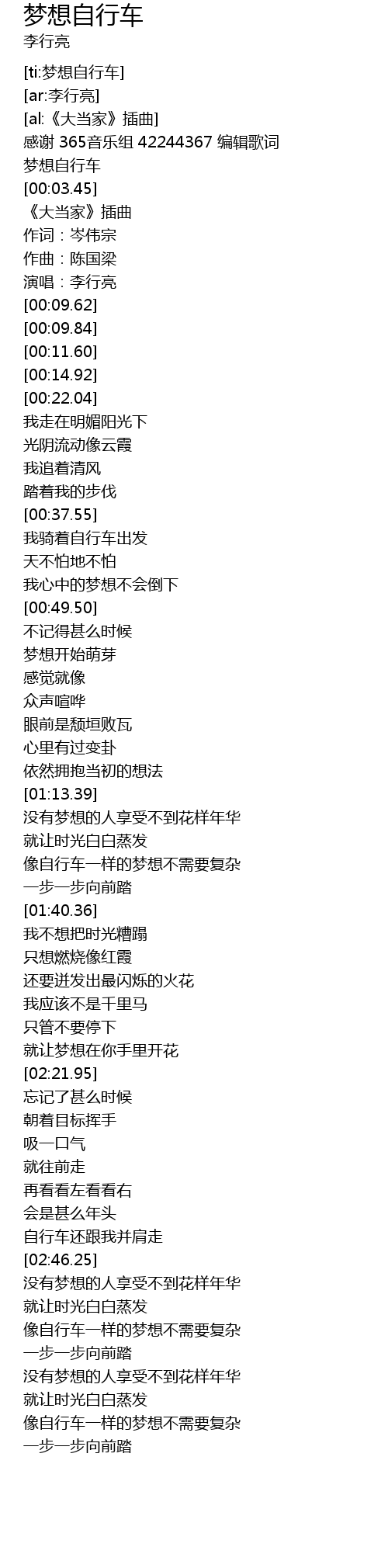 | [03:02.19] | 像自行车一样的梦想不需要复杂 |
