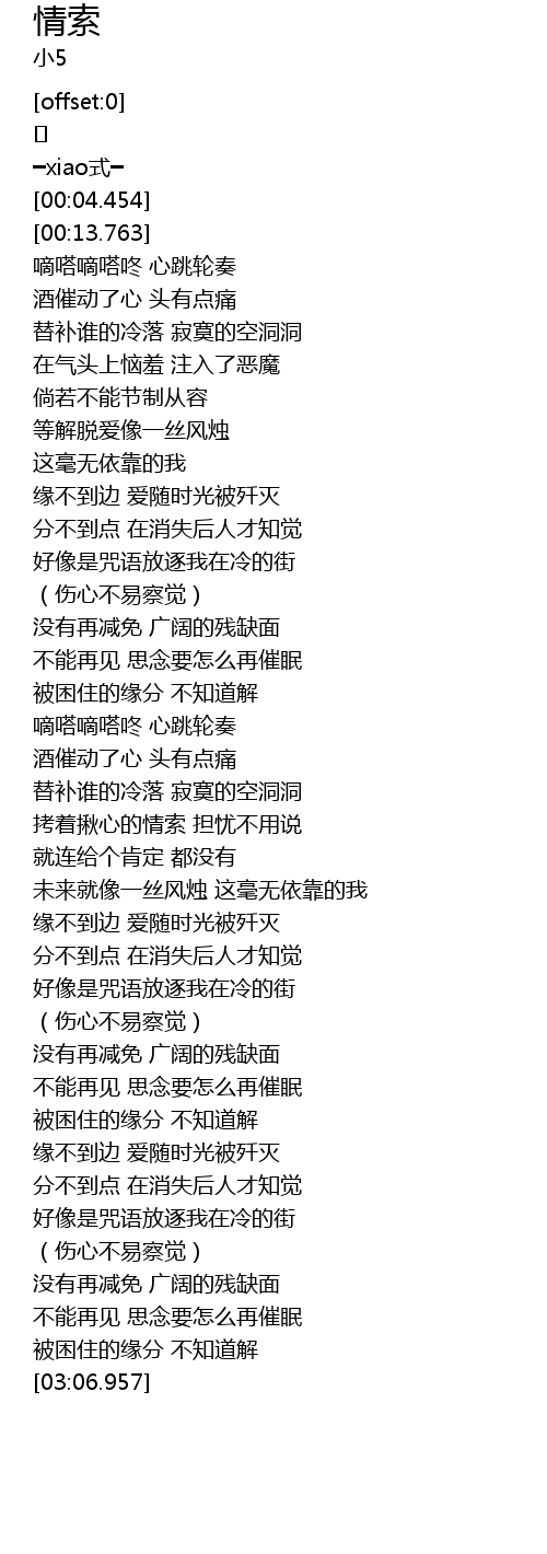 | [00:56.581] | hǎo xiàng shì zhòu yǔ fàng zhú wǒ zài lěng de jiē |