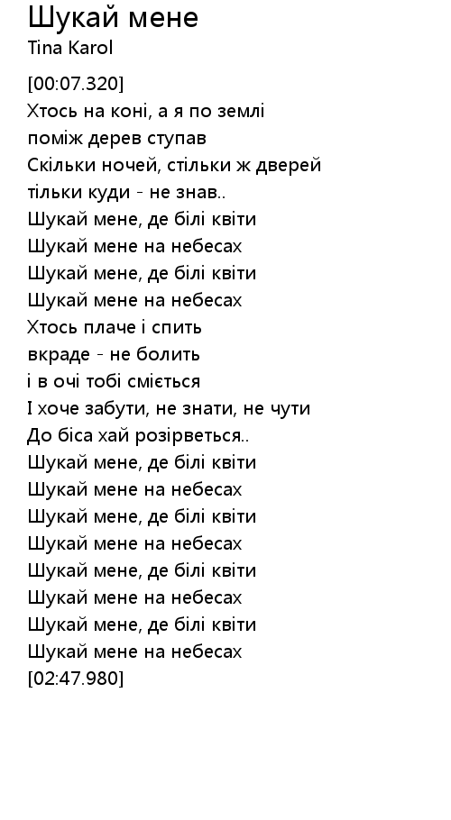 Шукай мене  Lyrics