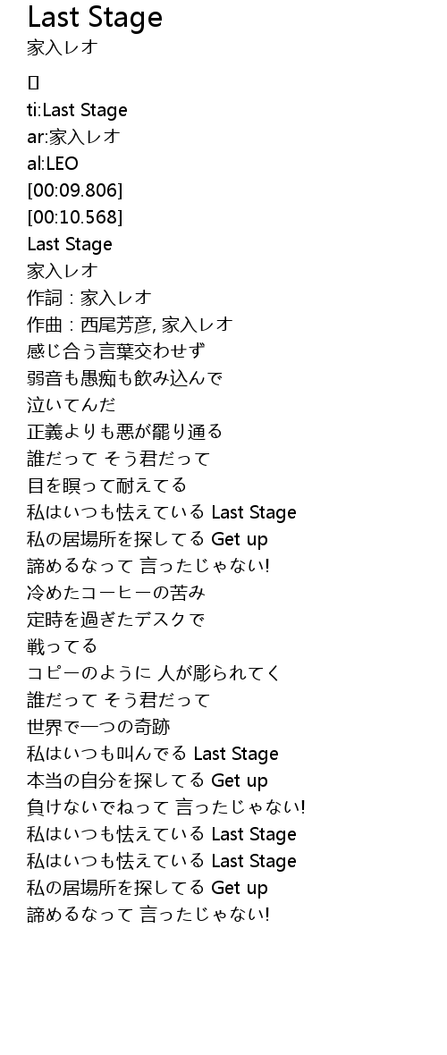 | [00:13.65] | Last Stage |