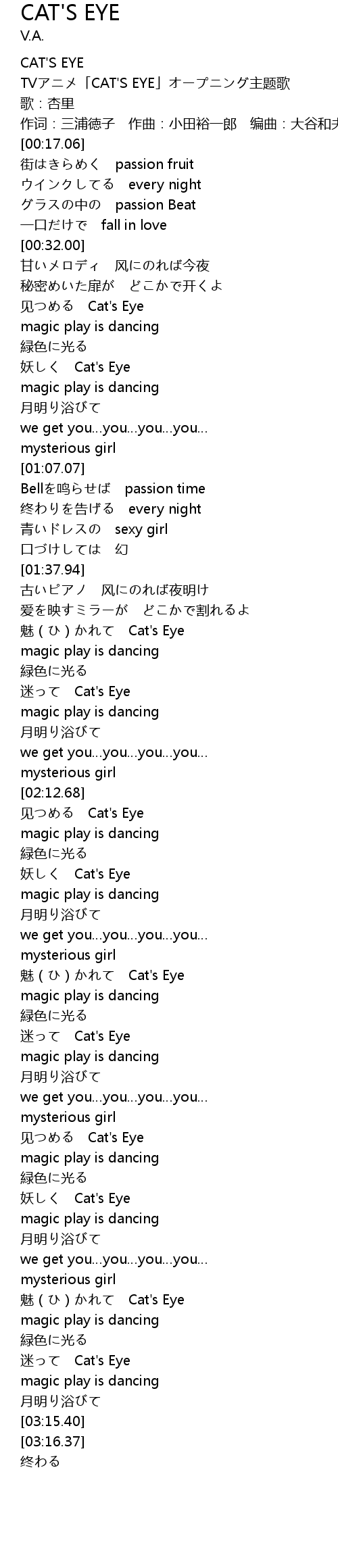| [00:11.06] | TVアニメ「CAT'S EYE」オープニング主题歌 |
