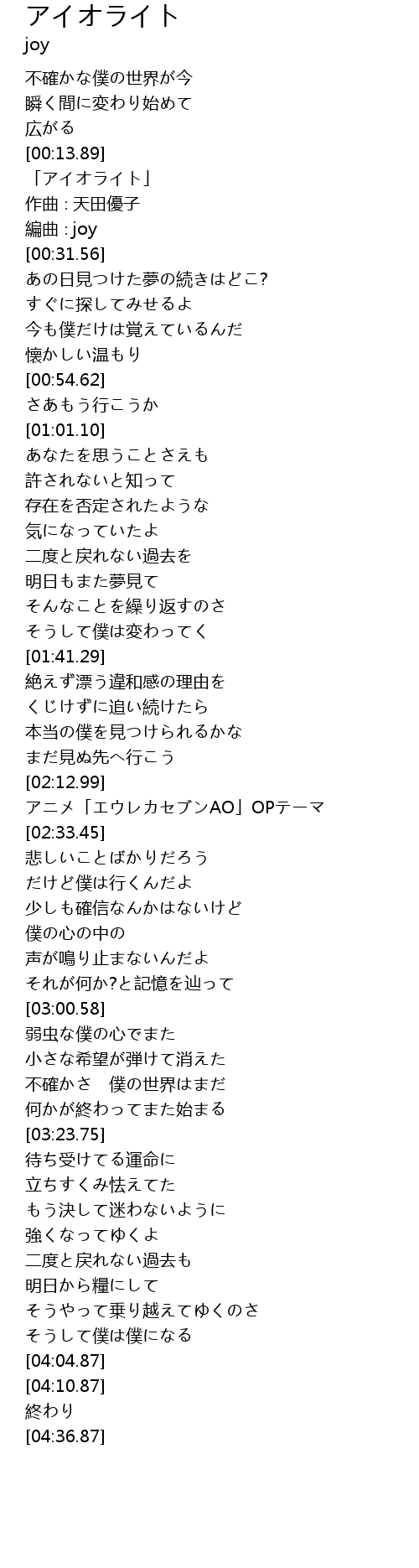 | [00:17.03] | 「アイオライト」 |