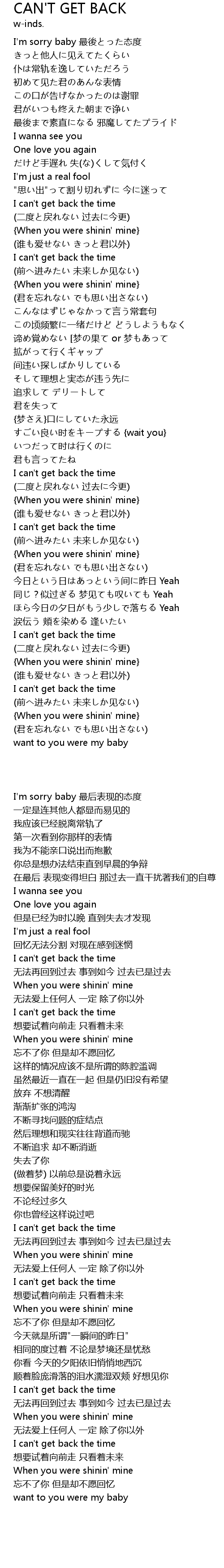 | Song | CAN'T GET BACK |