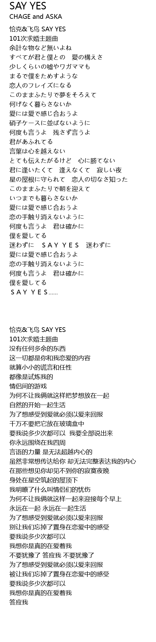 | [00:02.14] | 恰克&飞鸟 SAY YES |