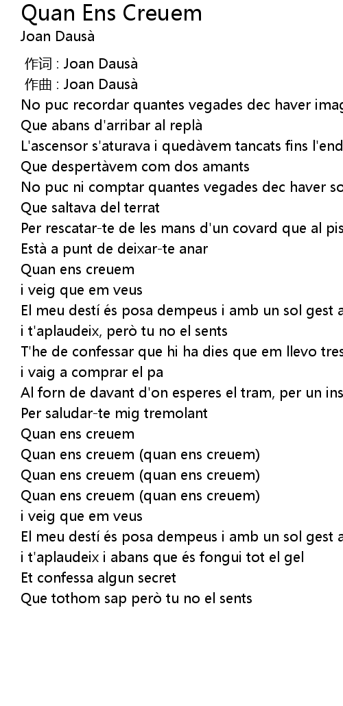 | [00:00.000] | 作词 : Joan Dausà |
