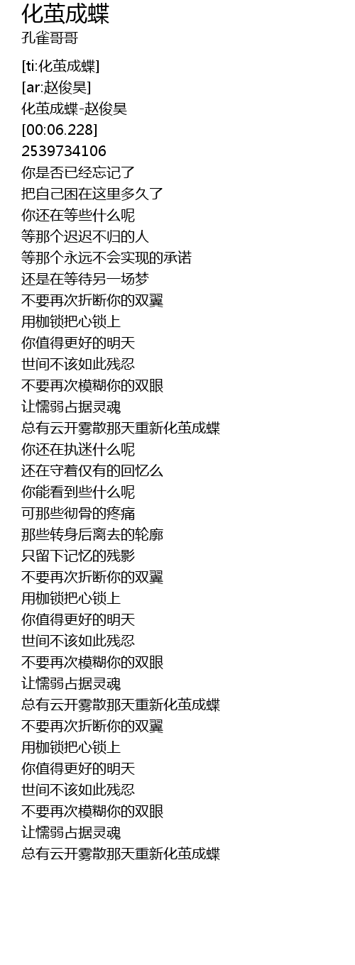 | [00:01.227] | 化茧成蝶-赵俊昊 |