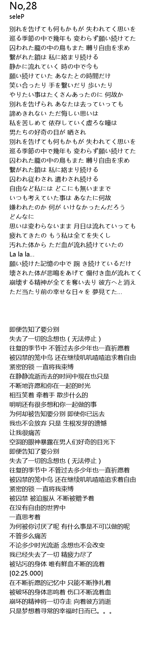 | [02:19.000] | 汚れた体から ただ血が流れ続けていたの |