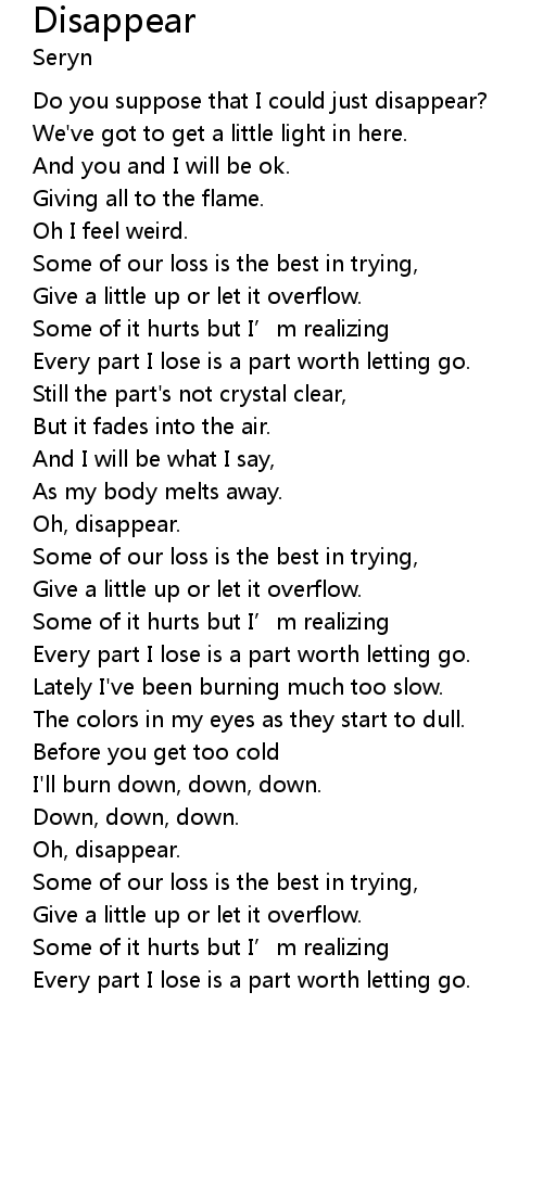 | Do you suppose that I could just disappear? | |