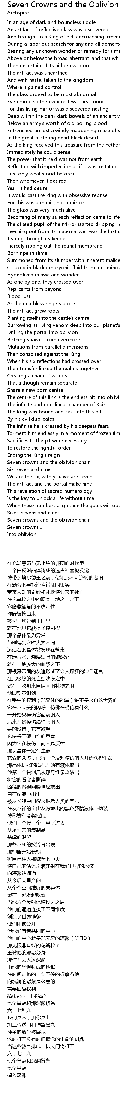 Seven crowns and the oblivion chain |