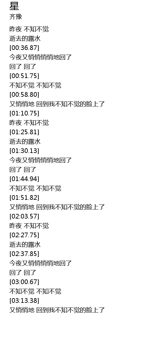 | [00:40.64] | 今夜又悄悄悄悄地回了 |