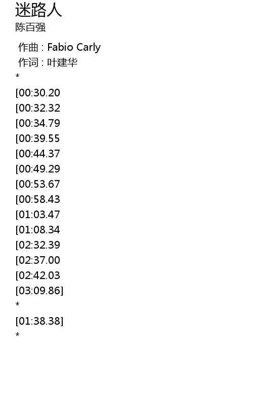 | [01:53.58][00:34.79] | 我如迷路人 寻觅情路的灯 |