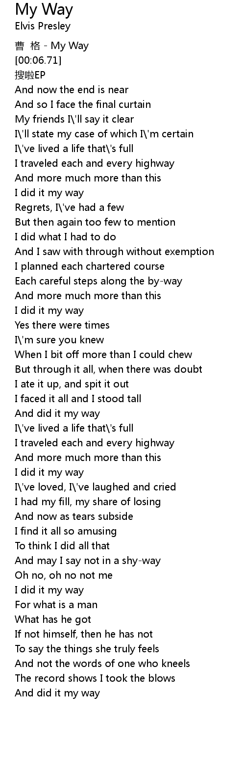 | [00:50.87] | I did it my way |