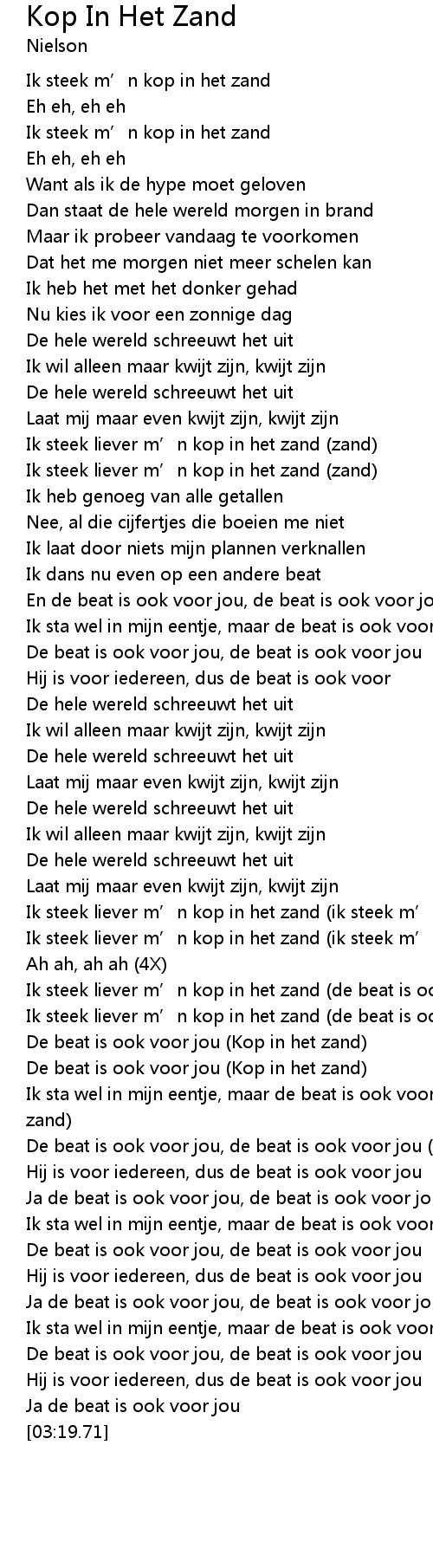 | [02:38.04] | De beat is ook voor jou Kop in het zand |