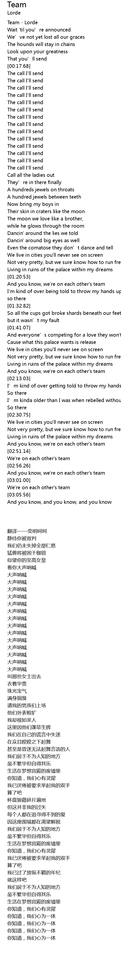 | [00:00.76] | Team Lorde |