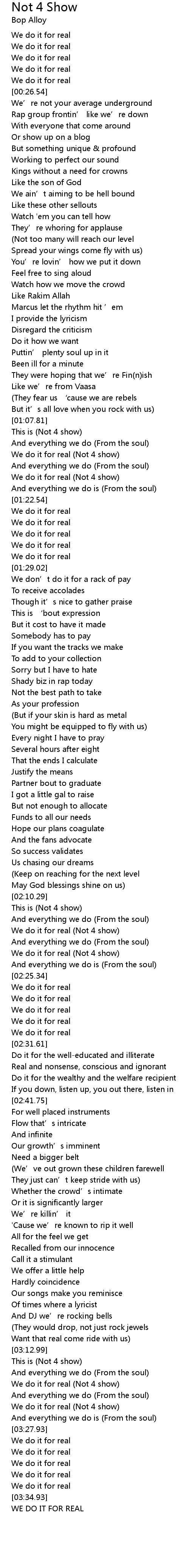 | [03:22.60] | We do it for real (Not 4 show) |