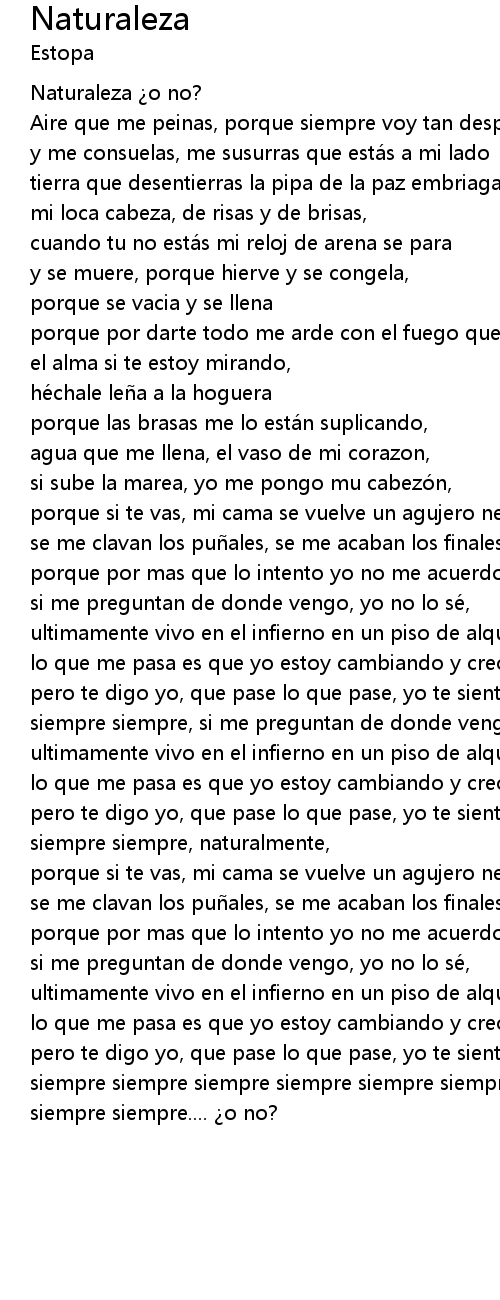 | Song | Naturaleza |