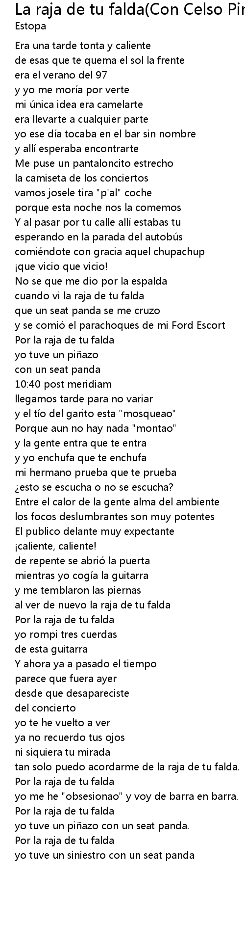 | Song | La raja de tu falda(Con Celso Pinya) |