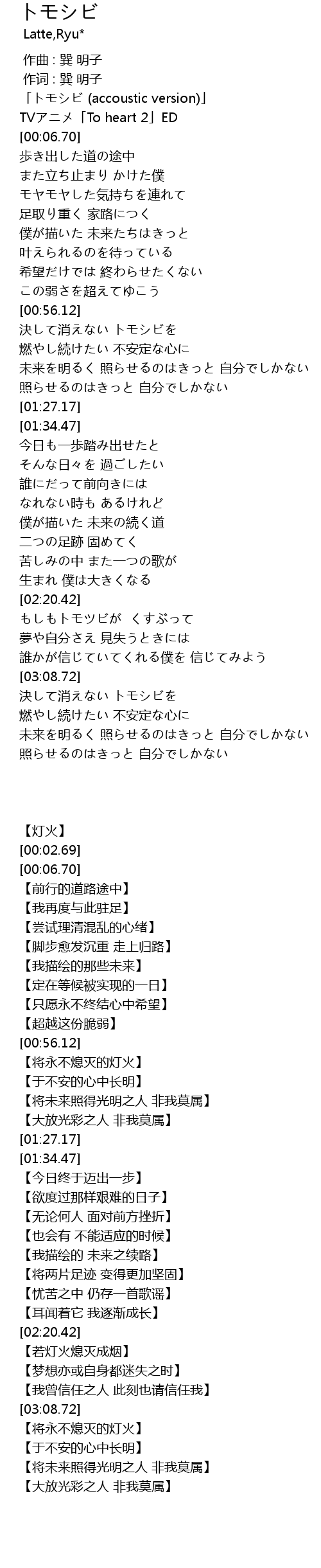 | [00:01.67] | 「トモシビ (accoustic version)」 |