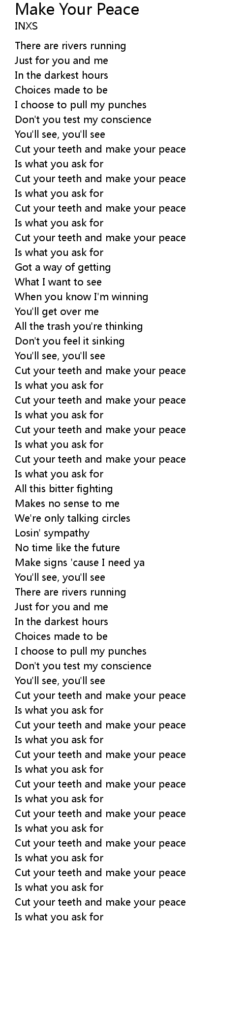 Cut your teeth and make your peace |
