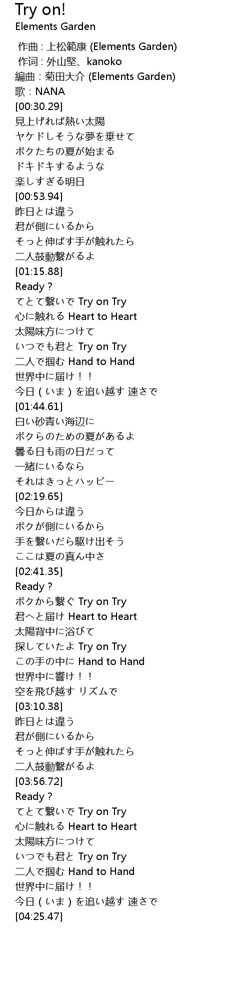 | [02:43.93] | ボクから繋ぐ Try on Try |