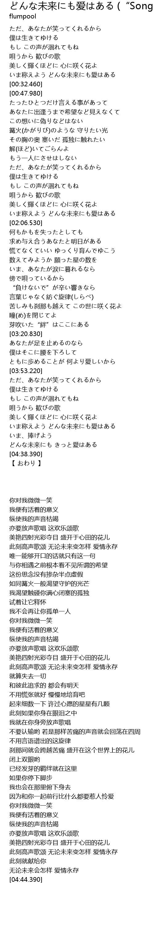 | [04:30.940] | どんな未来にも きっと愛はある |