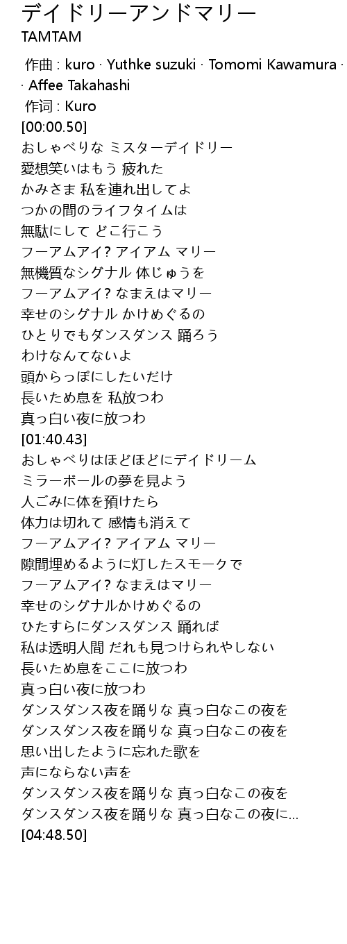 | Song | デイドリーアンドマリー |
