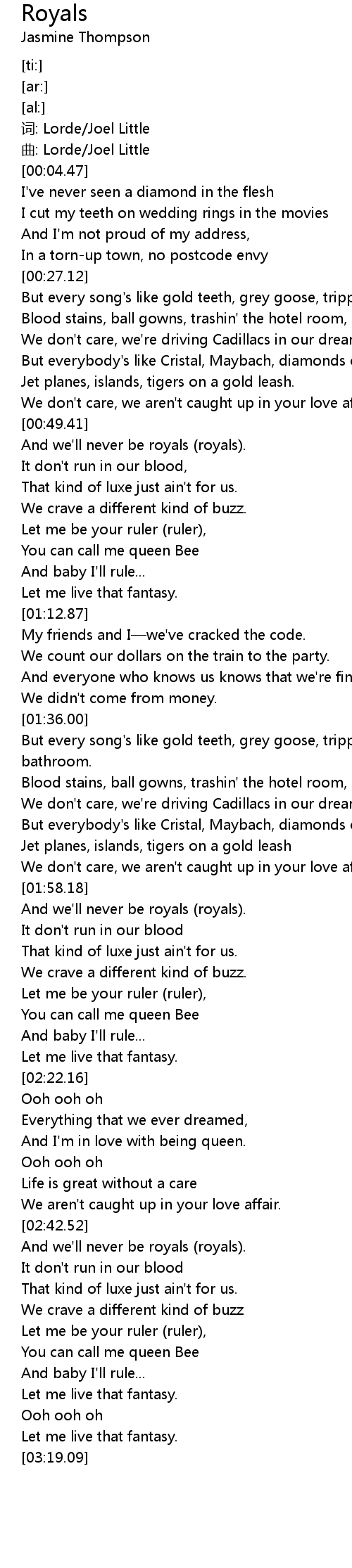 | [00:49.47] | And we'll never be royals (royals). |