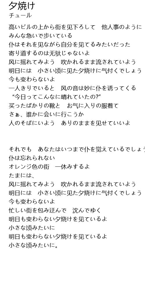 | 明日には 小さい顷に见た夕烧けに气付くでしょう | |