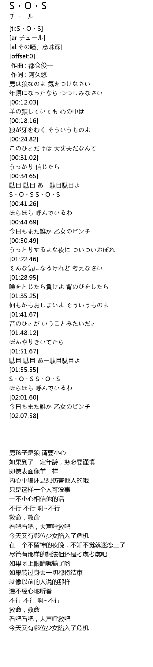| [00:01.03] | 男は狼なのよ 気をつけなさい |