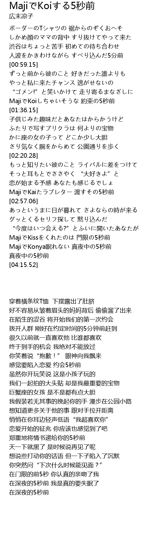 | [03:58.43] | MajiでKonya眠れない 真夜中の5秒前 |