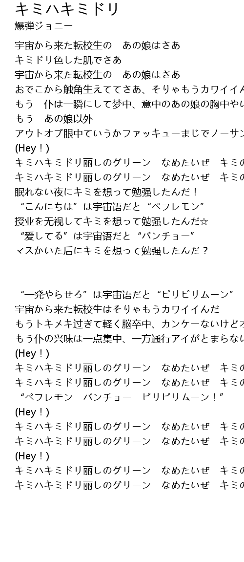 | キミハキミドリ丽しのグリーン なめたいぜ キミのおニャン子 |