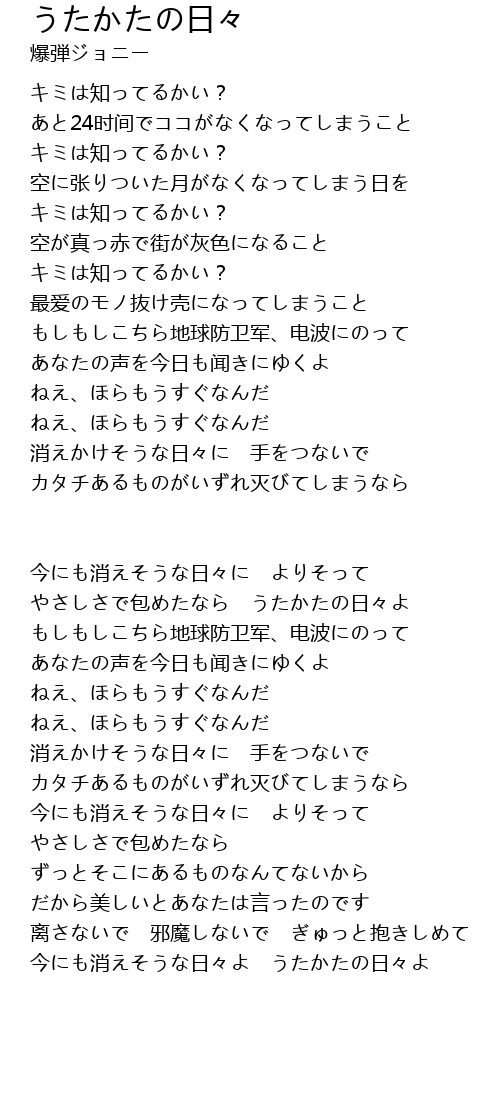 | 今にも消えそうな日々よ うたかたの日々よ |
