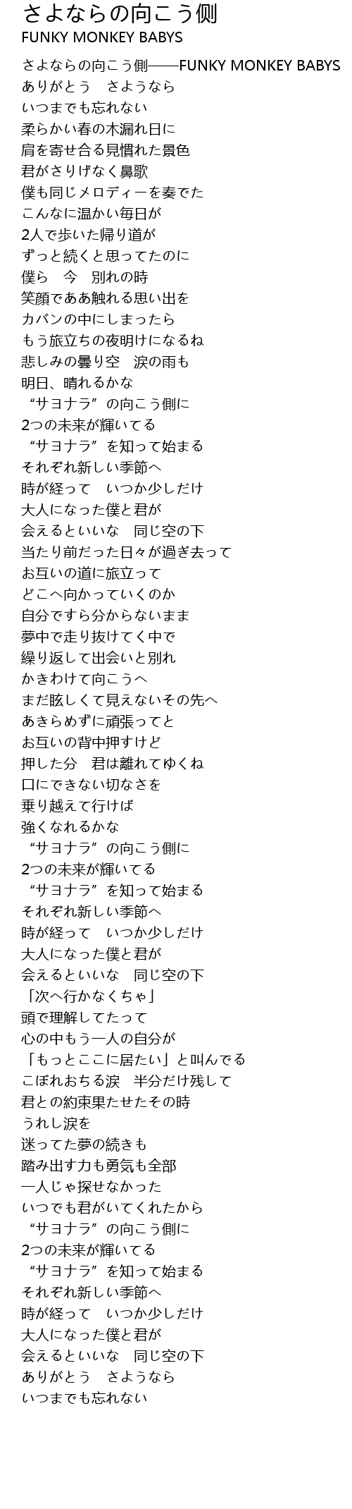 | [00:00.00] | さよならの向こう側——FUNKY MONKEY BABYS |