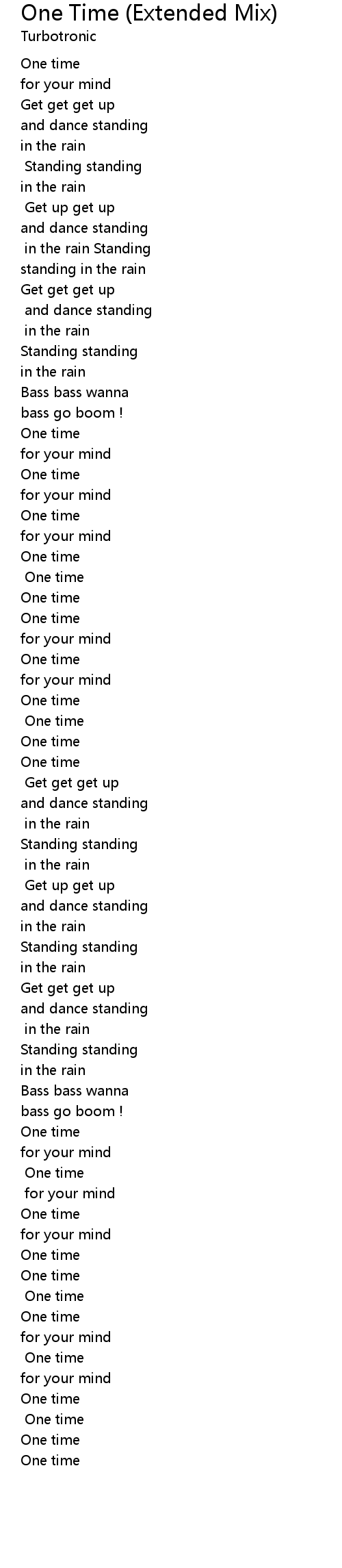 One Time (Extended Mix) Lyrics