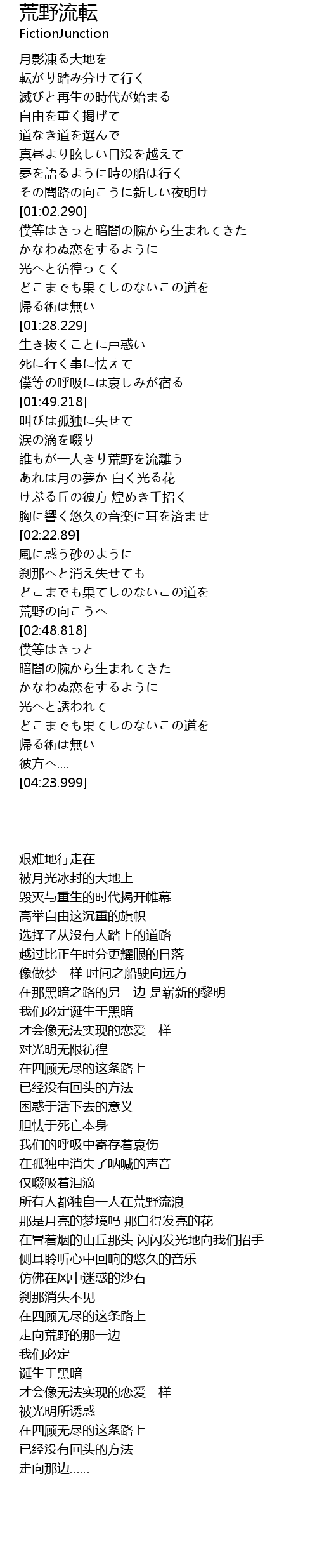 | [01:57.389] | 誰もが一人きり荒野を流離う |