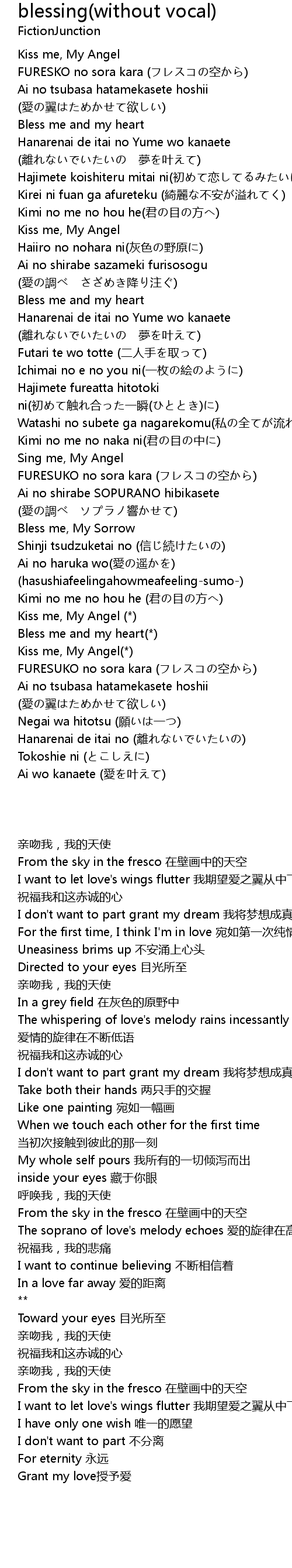 | [03:34.01] | Ai no tsubasa hatamekasete hoshii (愛の翼はためかせて欲しい) |