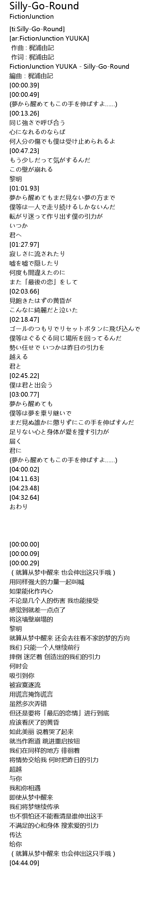 | [00:00.00] | FictionJunction YUUKA SillyGoRound |