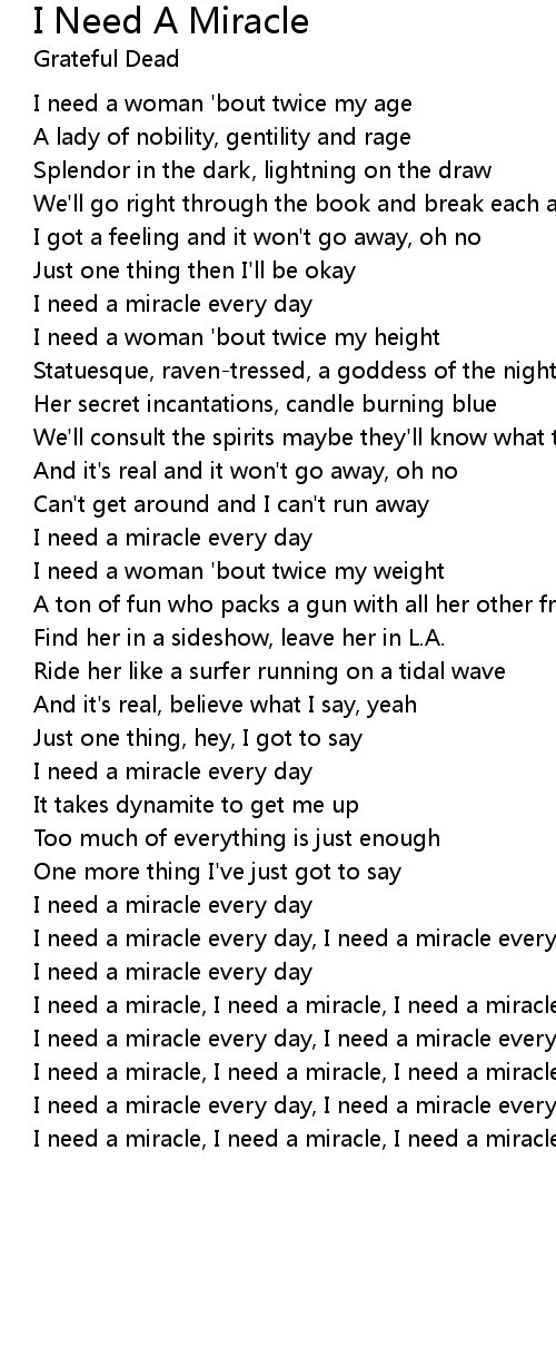I Need A Miracle Lyrics
