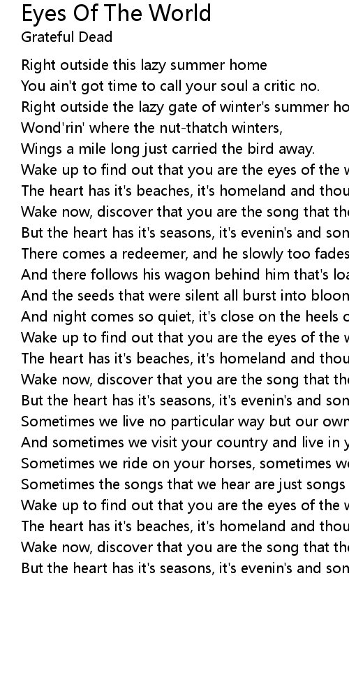 But the heart has it's seasons, it's evenin's and songs of it's own. |