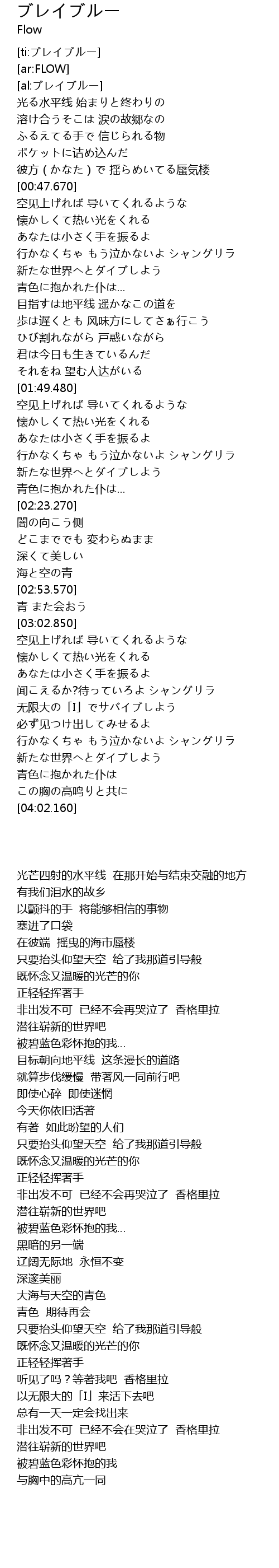 | [03:39.840] | 行かなくちゃ もう泣かないよ シャングリラ |