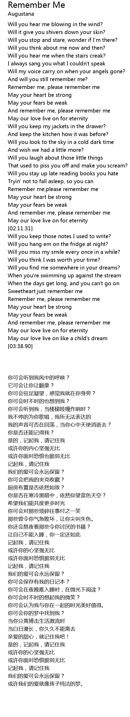 Remember me,please remember me |