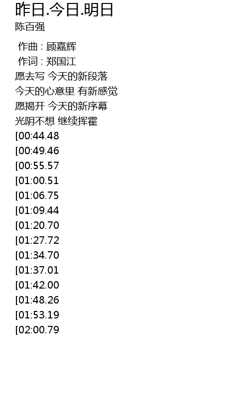 | [00:00.00] | 作曲 : 顾嘉辉 |
