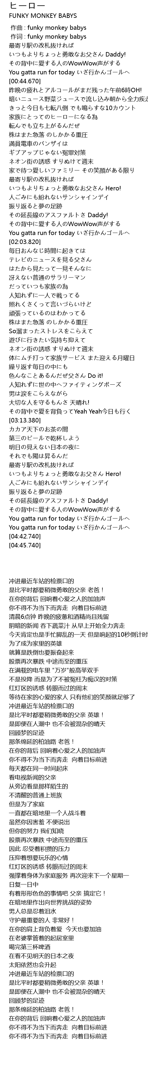 | [03:03.290] | その背中で愛を背負ってYeah Yeah今日も行く |