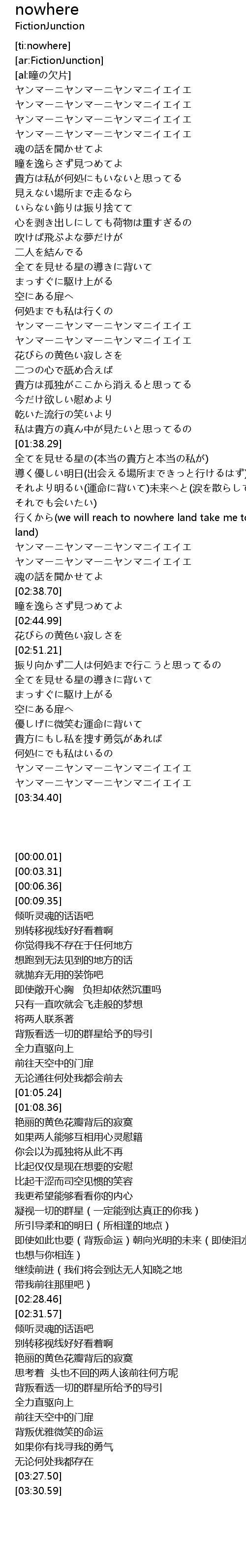 | [02:21.85] | 行くから(we will reach to nowhere land take me to the nowhere land) |